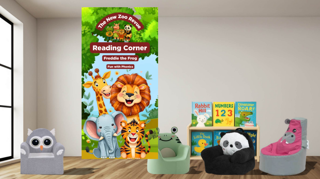 The New Zoo Revue Reading Corner transforms reading time into an immersive, joyful learning experience—designed to spark a lifelong love of books while building strong early literacy foundations through phonics, storytelling, and imaginative play.