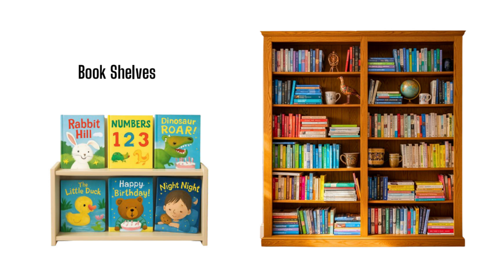 ✔Age-appropriate bookshelves for independent exploration